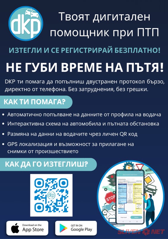 Българските шофьори вече имат на разположение иновативно мобилно приложение – DKP, което позволява попълването на електронен двустранен констативен протокол (ДКП) директно през мобилния телефон. Приложението е безплатно и цели да улесни водачите при настъпване на лек пътен инцидент, като същевременно намали административните затруднения и донесе реални обществени ползи.