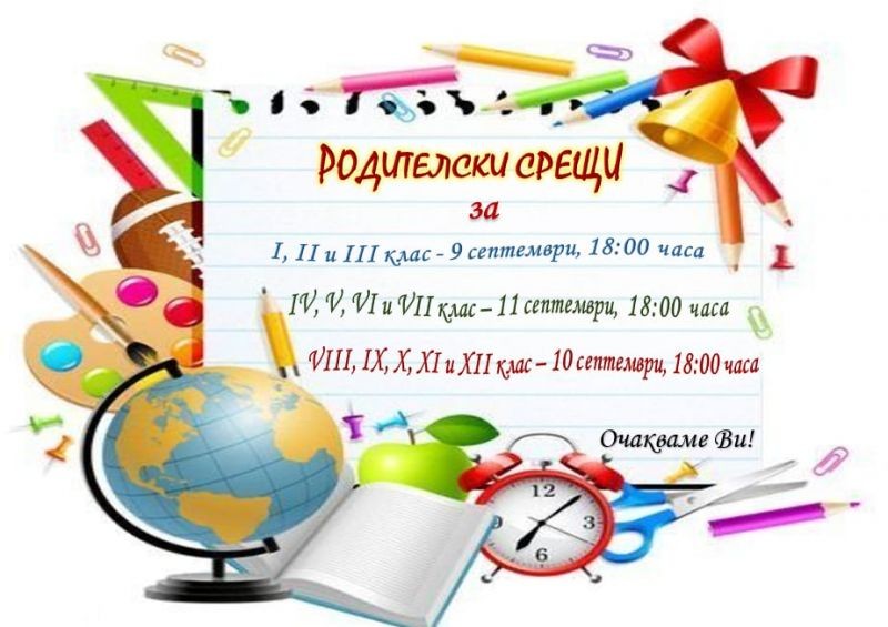 Във връзка с началото на учебната 2025/2026 година имаме удоволствието да Ви поканим на родителски срещи.