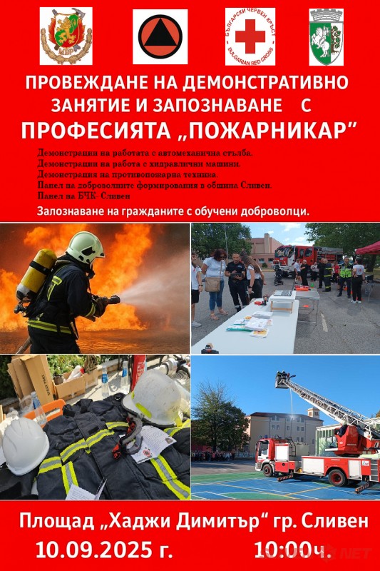На 10.09.2025 г. (сряда) от 10,00 до 12,00 часа на площад "Хаджи Димитър" ще се проведе демонстративно занятие с широка програма.