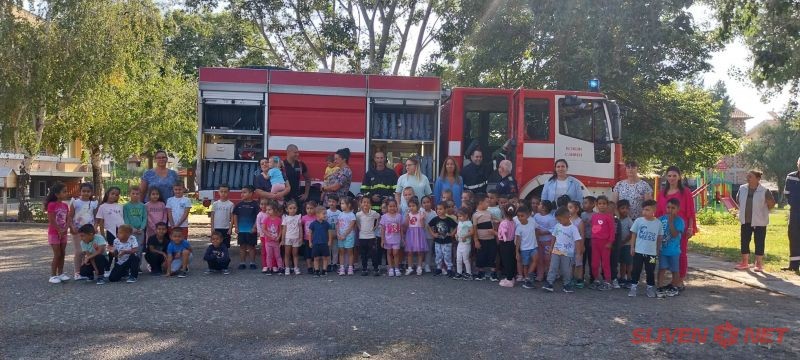 В рамките на „Седмицата на пожарната безопасност“ (8–14 септември) служителите на Районна служба „Пожарна безопасност и защита на населението“ – Твърдица проведоха специално занятие с децата и персонала на Детска градина „Щастливо детство“.