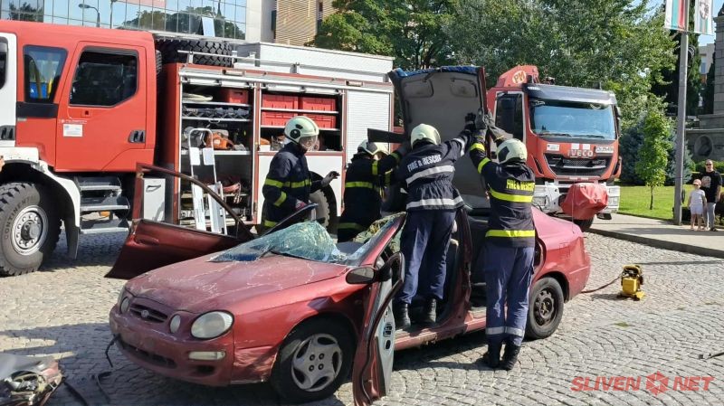 Едно от основните събития се състоя днес, то бе организирано и проведено от екипи на Районната служба ПБЗН в Сливен. На площад „Хаджи Димитър“ от 10,00 до 12,00 часа пожарникарите отбелязаха своя празник със зрелищна демонстрация по спасяване на хора при тежко пътно произшествие с лек автомобил, гасене на пожар с помощта на автомеханична стълба и спасяване на пострадал от висока сграда. В демонстрациите се включиха и представители на Българския червен кръст и ЦСМП-Сливен, които показаха нагледно как се оказва първа помощ. По инициатива на Община Сливен бяха раздадени информационни материали, специално изработени с цел популяризиращи на доброволчеството.