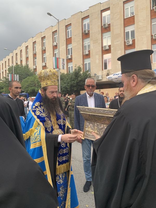Областният управител Чавдар Божурски взе участие в посрещането на пояса на Богородица в Сливен