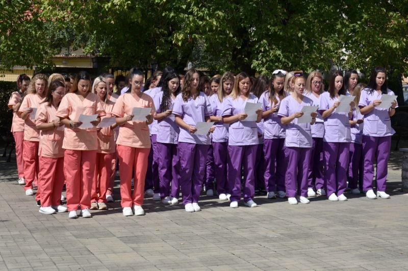 Церемонията продължи с полагане на клетва на първокурсника. Общо 186 студенти ще се обучават тази година в сливенския филиал. Първокурсниците в специалност „Акушерка“ тази година са 18, а „Медицинска сестра“ са избрали 46 души.
