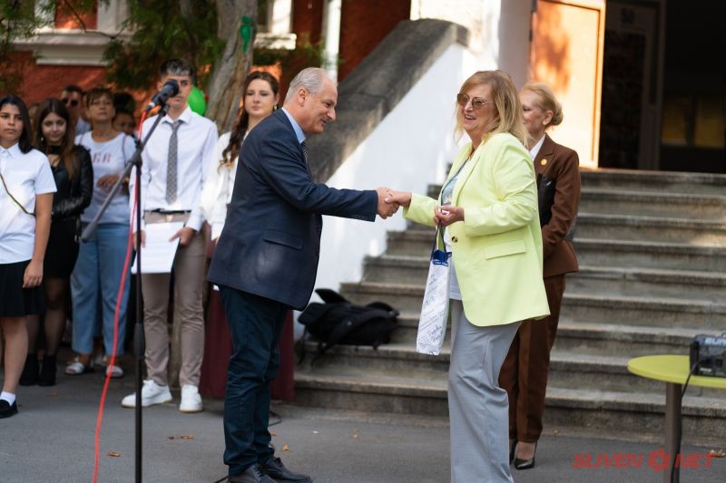 Тържественото откриване на учебната 2025/26 г. отново събра бивши и настоящи възпитаници и преподаватели, родители и приятели на Езиковата Гимназия в Сливен! За четвърта поредна година представители на Фондация Езиковата Сливен, инициатива на бивши възпитаници, вдъхновена преди три години от 50-тата годишнина на Езиковата, отправиха поздрав към настоящите възпитаници, преподаватели и родители и отново потвърдиха своето желание да останат свързани с днешните възпитаници и да подпомагат тяхното развитие и през предстоящата учебна година. Председателят на Алумни съвета на Фондацията, г-жа Дарина Кадънкова, бивш възпитаник, обяви първия по рода си стипендиантски фонд на Фондацията, наречен "Будители: Поколение Z", изцяло финансиран от дарения на бивши възпитаници. Фондът ще се отвори за кандидатстване символично в Деня на Народните Будители, 1 ноември и ще предостави пет стипендии срещу индивидуални пътни карти за развитие на днешните възпитаници. Друг жест на алумни общността на Езиковата за предстоящата учебна година е дарение на седем възпоменателни монети с лика на Захарий Стоянов, пуснати от БНБ по повод 175-годишнината от рождението му. Дарението бе връчено от г-н Венцислав Захариев, директор на клона на ПИБ в Сливен и родител на бивш възпитаник, на когото Фондацията и Гимназията изказват сърдечна благодарност за щедростта и съпричасността му към каузата на обединението и единството на поколенията, минаващи през Езиковата! Нека Знанието бъде с всички възпитаници и преподаватели на Езиковата и нека да доведе до лавина от успехи, постигнати мечти и още записки на Езиковата по Захариевски! На добър час и успешна учебна година!