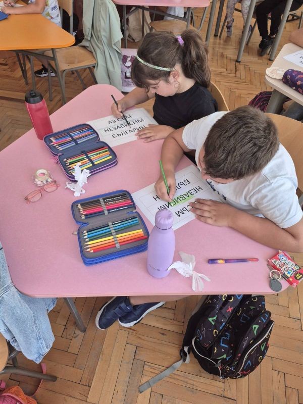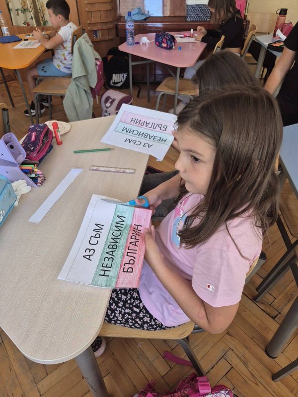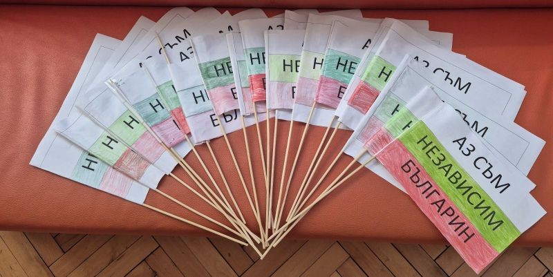 С много старание и родолюбие, децата създадоха знаменца в цветовете на българското знаме с надпис: „АЗ СЪМ НЕЗАВИСИМ БЪЛГАРИН“.