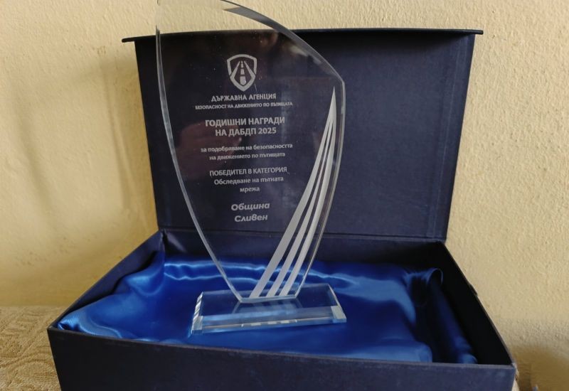 Община Сливен бе отличена с годишна награда от Държавната агенция „Безопасност на движението по пътищата“. Тя е в категория „Обследване и документиране на пътната и уличната мрежа“, в която Община Сливен бе отличена като голяма община с постигнато 100% обследване на над 1 000 км улична и пътна мрежа. В мотивите си Държавната агенция изтъква, че от страна на Община Сливен се полагат видими усилия за подобряване на пътнотранспортната обстановка. Според институцията още е похвално, че Община Сливен през 2024 г. демонстрира високо ниво на представяне на данни за общинските пътища, а през следващата 2025 г., значително подобрява нивото на обследване по улици, като достига до пълно покритие. Осигурени са систематичност при работа с данни за периода 2024-2025 г., високо ниво на надграждане през 2025 г. и голяма степен на пълнота на обследването през 2025 г. Според агенцията това вдъхва увереност и надежда, че всяка положена грижа за безопасността на пътя дава резултат и в дългосрочен план е безценна инвестиция в благосъстояние и просперитет.