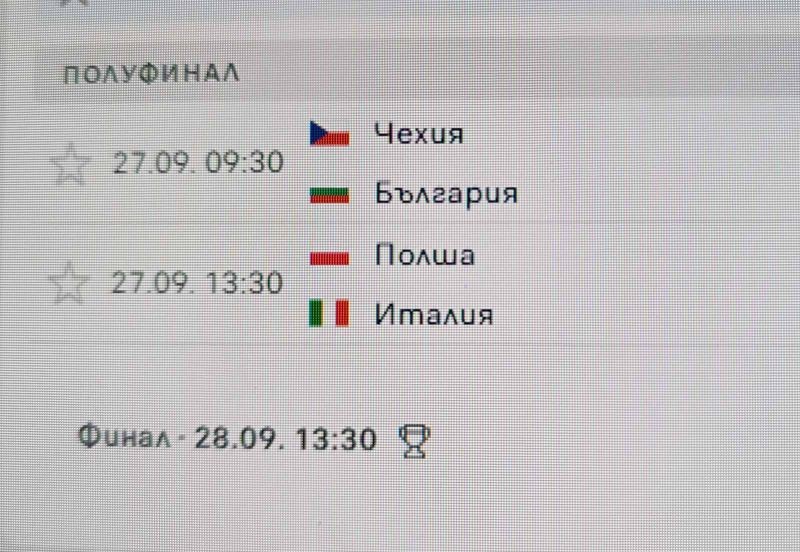 27 септември – събота от 9,30 е мачът между България и Чехия