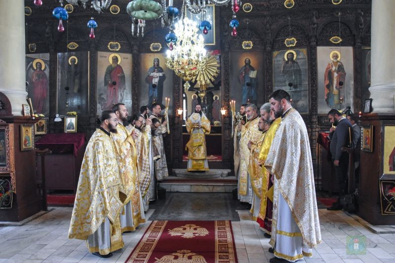 В съслужение с митрополита бяха: епархийските съветници ст. ик. Николай Димитров и ст. ик. Павел Гърбов – председател на храма, архиерейският наместник на Карнобатска духовна околия ст. ик. Иван Иванов, духовните надзорници ик. Йоан Петров и ик. Панайот Сотиров, както и прот. Серафим Димитров, прот. Ромил Георгиев и гостуващият свещеник ик. Павел Максимов от гр. Шабла и архидякон Поликарп.