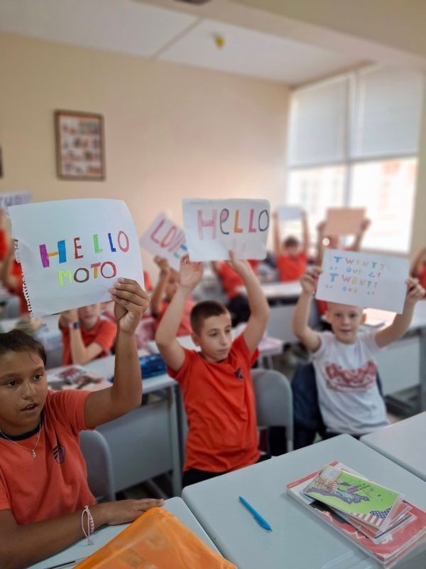 Петокласниците изготвиха проекти с любима дума на английски език и изпяха песента "Hello to all the children of the world".