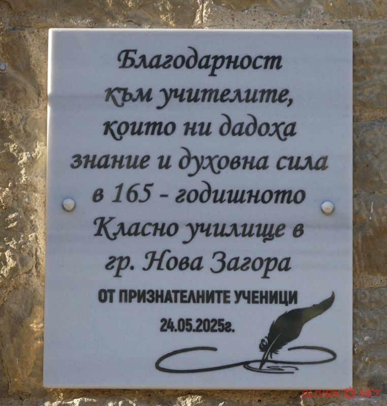 На 27 септември 2025 г. Средно училище „Христо Ботев“ – гр. Нова Загора се превърна в сцена на едно трогателно и вдъхновяващо събитие. По инициатива на випуск 1970 г., със съдействието на Община Нова Загора, бе открита паметна благодарствена плоча, посветена на 165-годишнината от създаването на Класното училище – предшественик на днешното учебно заведение. В училищния двор бе засадено и Дърво на благодарността – величествен чинар, символ на вечност, духовност и вяра в доброто.
