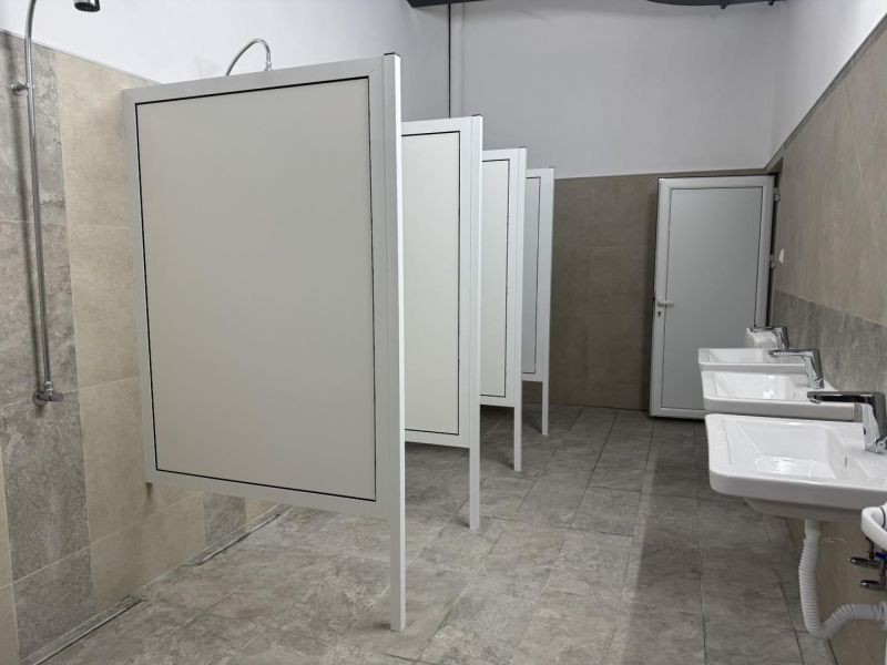 Целта на текущия ремонт бе обновяване на помещенията, като се премахнат старите покрития по стените и подовете, които да бъдат заменени с нови, съвременни материали. Бяха ремонтирани трите отделни съблекални - за жени, за мъже и за деца. Всяка от тях се състои от преддверие, съблекалня, тоалетна с преддверие и помещение с душове. Ремонтирано е и санитарното помещение за спасители. Ремонтните дейности по отделните помещения включваха демонтаж на елементите, сред които умивалници, огледала, душ батерии с душове, батерии на мивки, радиатори, осветителни тела, подови сифони, PVC первази, паравани на душове, шкафчета, моноблок в тоалетни и радиатори. Извършен е ремонт и на ВиК инсталациите. Бяха премахнати старите корозирали тръби, като на тяхно място бяха монтирани нови полипропиленови водопроводни тръби за студена и топла вода. Канализационни тръби бяха заменени с нови PVC тръби. Старите плочки по стените и настилката по подовете също бяха премахнати. Беше положен противохлъзгащ гранитогрес с хидроизолация под него и други, свързани с тази дейност. Стените с височина над 2 м и таваните бяха шпакловани и измазани с водоотблъскващ латекс. Обновяване беше извършено още на преходното помещение от душовете към плувния басейн. Всички строително-монтажни дейности в помещенията се извършваха поетапно. Срокът за изпълнение на ремонтните дейности бе 70 календарни дни.