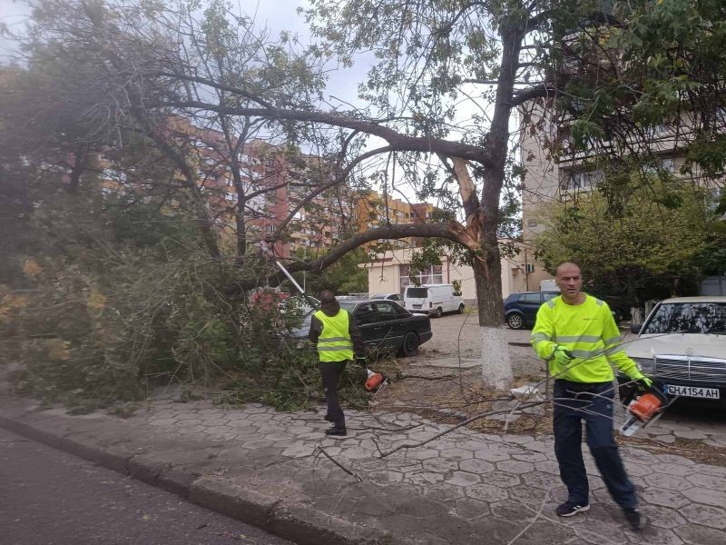 Вятър на пориви, достигащ до 90 километра в час, духа от снощи в сливенско. Има подадени сигнали за счупени клони на места и паднало дърво в квартал „Република“. Екипи на общинското предприятие по озеленяване са на терен и почистват клоните.