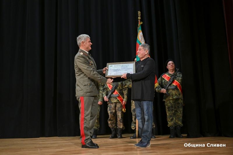 Честването в зала „Сливен“ уважиха областният управител Чавдар Божурски, председателят на Общински съвет - Димитър Митев и общински съветници, заместник-командирът на Сухопътните войски бригаден генерал Пламен Йорданов, зам.-кметът Пепа Чиликова, духовният надзорник на Сливенска епархия - свещеноиконом Йоан Петров, офицери от запаса, бивши и настоящи командири на военните формирования, началници, директори и представители на институции и организации в Сливен.