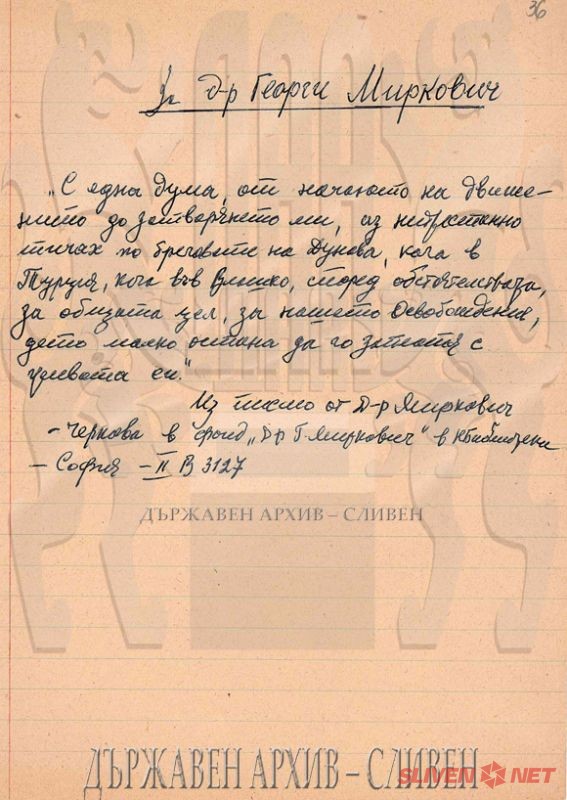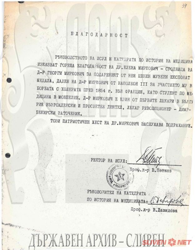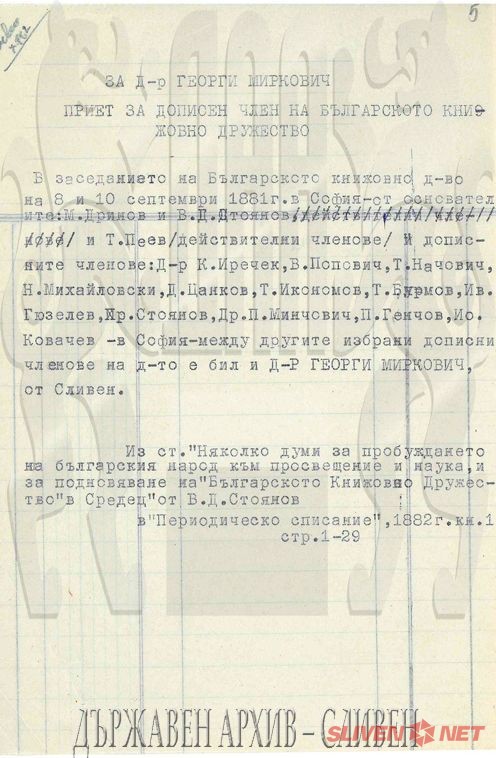 БлагодарностД-р Миркович приет за дописен член на БАНИз писмо на д-р Миркович за себе си