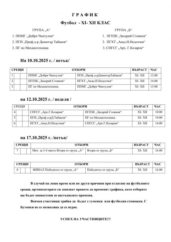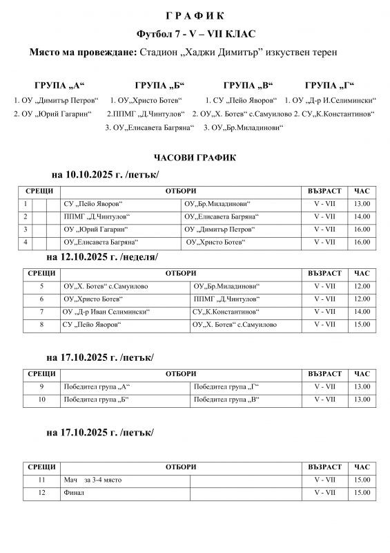 От 10 октомври започва Общинският кръг на Ученически игри 2025-2026 г. по футбол.