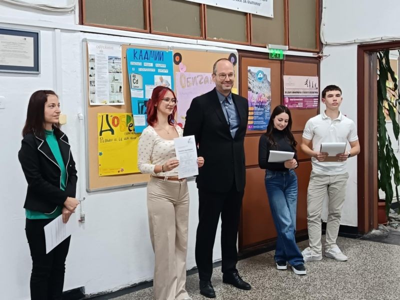 Тържественото връчване на дипломите се състоя в училището, като отличилите се ученици получиха своите сертификати лично от г-н Рони Йоренд, координатор по немски език.