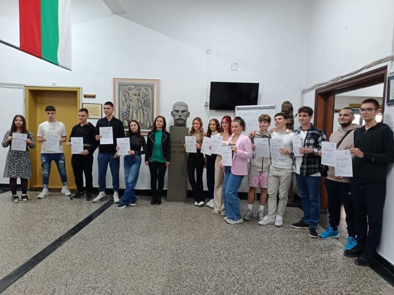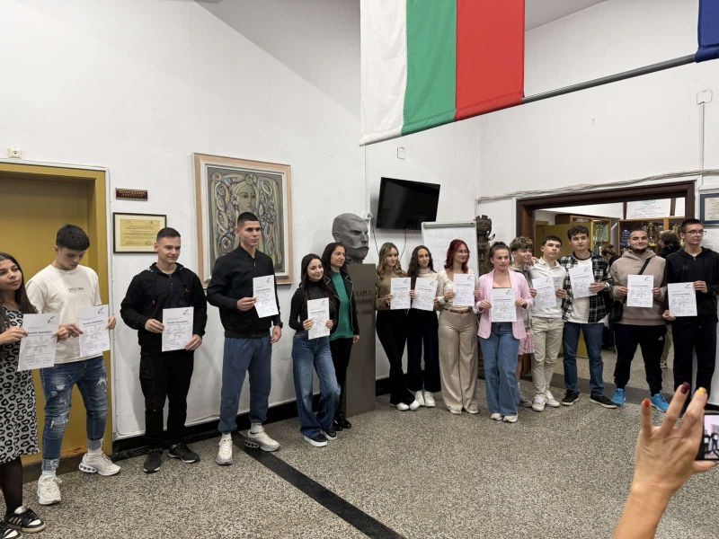 С гордост обявяваме, че 14 ученици от 9. клас и 7 ученици от 10. клас успешно положиха изпит и получиха немски дипломи за владеене на езика – ниво B1. Освен това 7 ученика взеха и сертификати за ниво А2.