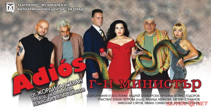 Пригответе се за вечер, в която ще се смеете до сълзи! На сливенска сцена предстои да оживее комедията „Adios, Господин министър“ – забавен и остроумен спектакъл по текст на Жорди Галсеран, с режисурата на Петьо Горанов.