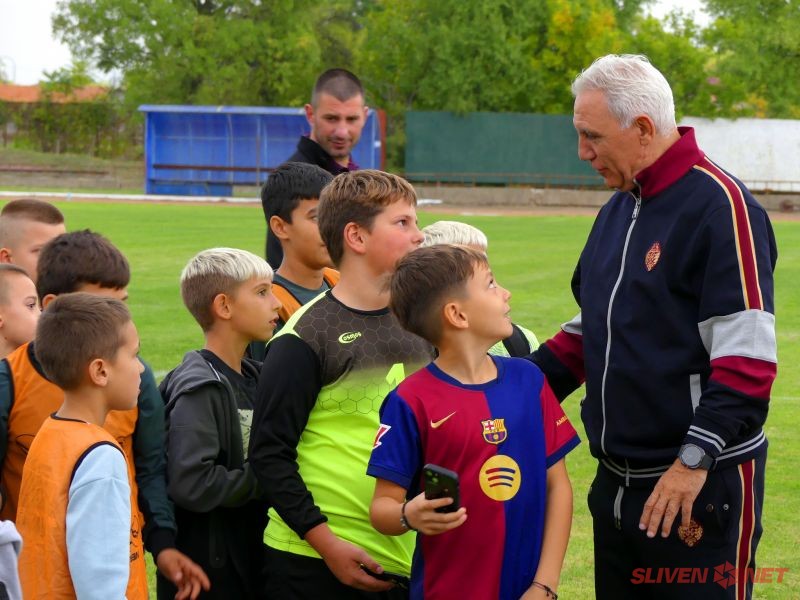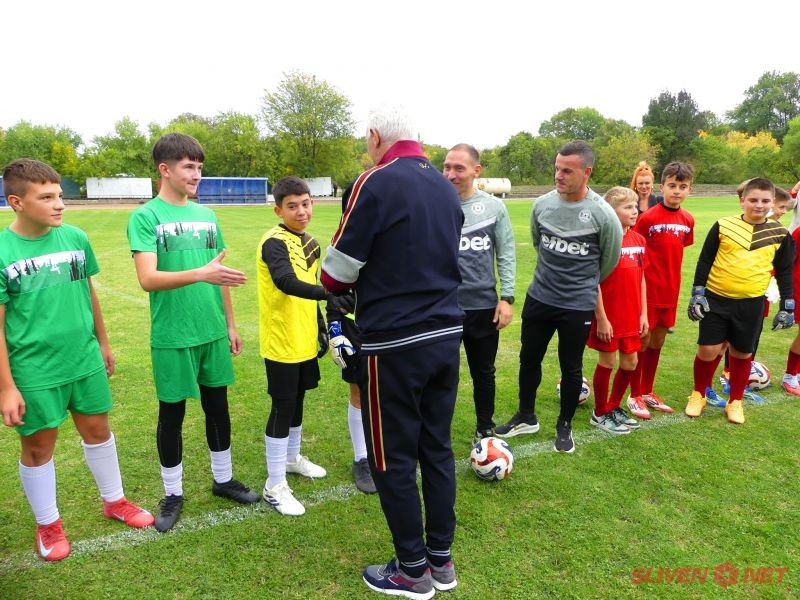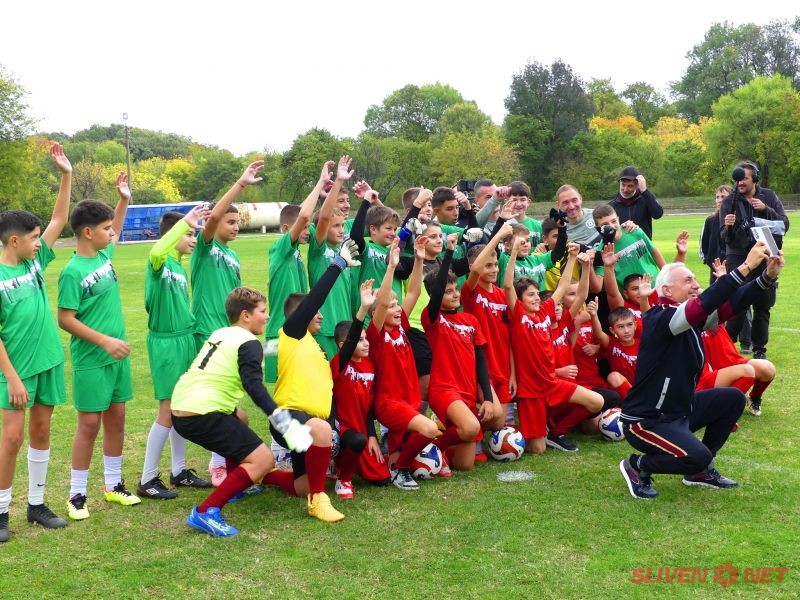 Малките футболисти от ФК „Загорец“ също отправиха своето специално приветствие към идола си с демонстративни изпълнения, показвайки, че примерът на Стоичков вдъхновява бъдещите шампиони.
