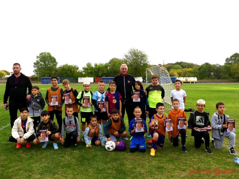 Малките футболисти от ФК „Загорец“ също отправиха своето специално приветствие към идола си с демонстративни изпълнения, показвайки, че примерът на Стоичков вдъхновява бъдещите шампиони.