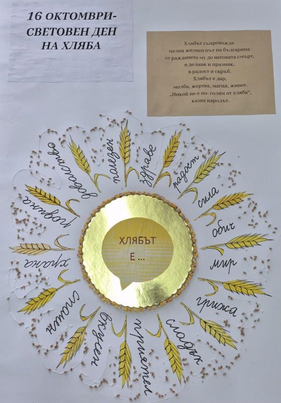 Учениците от 3. клас в ГЦОУД с ръководител г-жа Здравка Монева отбелязаха Деня на хляба – 16 октомври, като с много старание и вдъхновение изработиха красив постер, посветен на „златното житно зърно“.