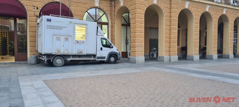 Пред сградата на Община Сливен е позиционирана мобилна автоматична станция (МАС) за измерване на неорганизирани емисии на вредни вещества в атмосферния въздух след възникналия пожар на територията на автоморга „Ен Ди Си“ в града.