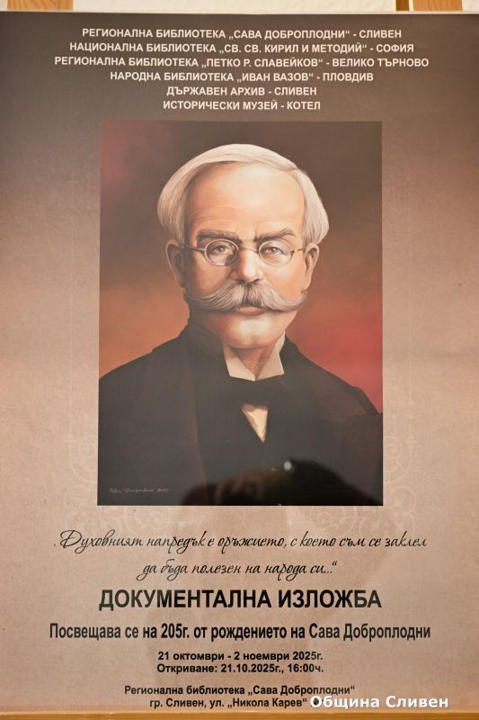 Документална изложба, посветена на 205 години от рождението на Сава Доброплодни, беше открита в Сливен