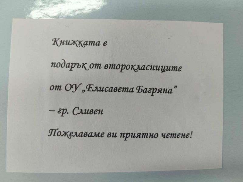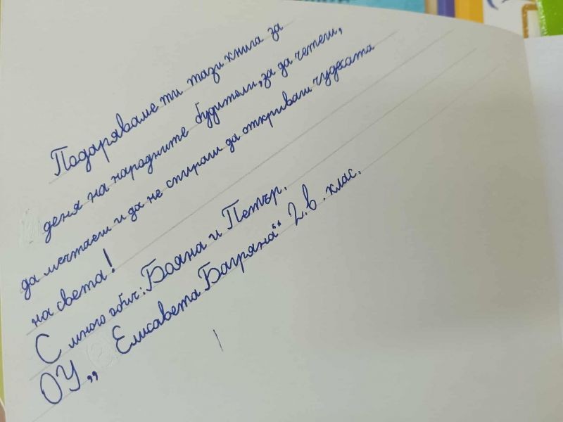 По повод Деня на народните будители – 1 ноември, учениците от 2. клас от ОУ „Елисавета Багряна“с много ентусиазъм се включиха в благотворителна кампания за даряване на книги на организацията „Запази Доброто“. Малките читатели събраха и подариха любими детски книги от български автори, за да зарадват свои връстници и да споделят радостта от четенето. Написаха прекрасни пожелания, с които ги поздравиха и им пожелаха никога да не спират да мечтаят.