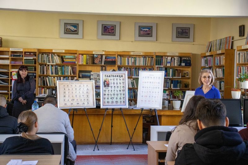 В навечерието на 1 ноември – Деня на народните будители, и във връзка с отбелязването на 1170 години от създаването на първата азбука в библиотека „Зора“ се проведе изнесен урок на тема „Пазители на Глаголицата“. Съвместната инициатива даде възможност на учениците от ПХГ „Дамян Дамянов“ отблизо да се запознаят с мъдрите послания, които крие глаголицата, да си припомнят делото на най-първите народни будители – св. Кирил и св. Методий. В диалог ученици и учители разгледаха символите и тълкуванията на писмената, за да се постави една начална точка и така всеки да може да изследва за себе си какви послания му носи глаголицата. Най-интересната част от урока бе свързана със създаване на текст с помощта на глаголическите знаци, когато учениците успяха да изпишат своите любими думи. В заключителната част на урока младите хуманитаристи направиха извода, че независимо дали се използват за писане на свещени текстове, или като част от магически и лечебни ритуали, глаголическите букви остават символ на силата и мистиката, свързан с древната славянска култура.