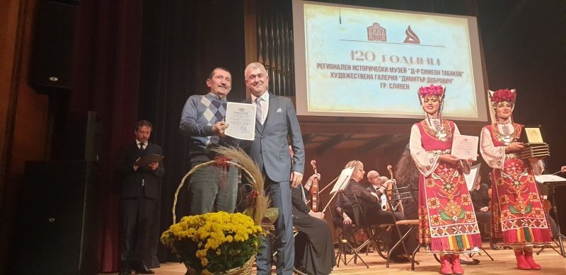 От своя страна кметът на Община Сливен Стефан Радев се обърна с благодарност към служителите на музея и галерията, които съвместно честваха 120 години от основаването на двете институции, връчвайки плакети на двамата директори – Маргарита Пенева и доц. д-р Николай Сираков.
