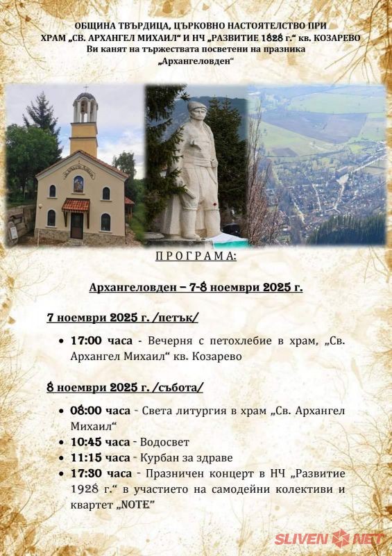 Община Твърдица кани жителите и гостите на празнично отбелязване на Архангеловден