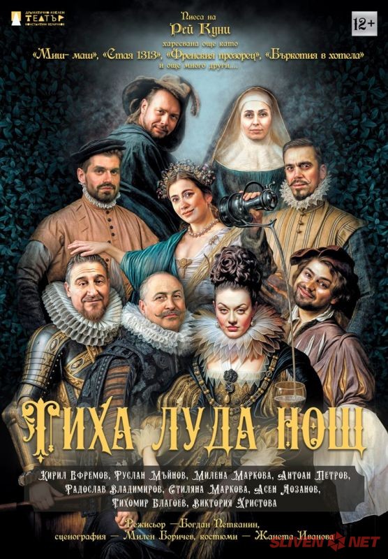 На 9 ноември (неделя) от 19:00 часа в зала „Зора“ – Сливен, зрителите ще могат да се насладят на изключително забавния гостуващ спектакъл „Тиха луда нощ“ – постановка на ПК „Ажур Пико“ и ДКТ „Константин Величков“ – Пазарджик.