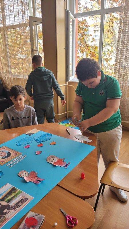 Учениците, работещи с екипа за подкрепа на личностното развитие, твориха в ресурсния кабинет. С много вдъхновение и въображение те представиха своя поглед към света на Йордан Йовков.