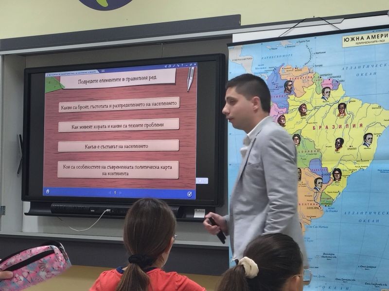 В урока по география и икономика интерактивните дейности включваха решаване на кръстословица, както и гледане и анализ на видеоматериали, свързани с темата.