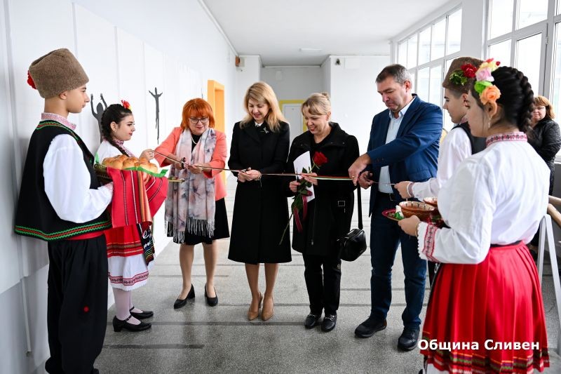 ПГЕЕ „Мария Склодовска-Кюри“ в Сливен отбеляза празника на училището с откриване на паметна плоча на своя патрон
