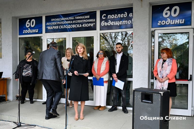 С откриване на паметна плоча на своя патрон Професионална гимназия по електротехника и електроника „Мария Склодовска-Кюри“ отбеляза празника на училището. Своите поздравления към ръководството, екипа и учениците на школото отправи заместник-кметът Пепа Чиликова. Тя връчи поздравителен адрес от кмета Стефан Радев на директора на гимназията инж. Татяна Башева-Кънева.