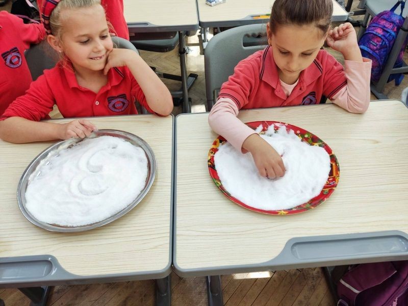 С нескрит интерес учениците изписаха изучените цифри върху сол, оцветяваха цифри, посипани със сол, и подредиха изложба. Така разбраха, че математиката наистина може да предизвиква положителни емоции и чувства.