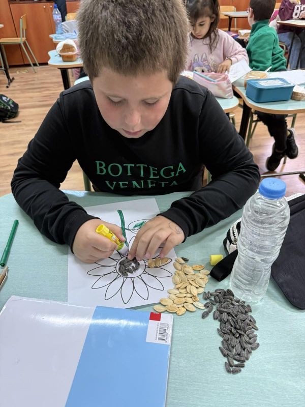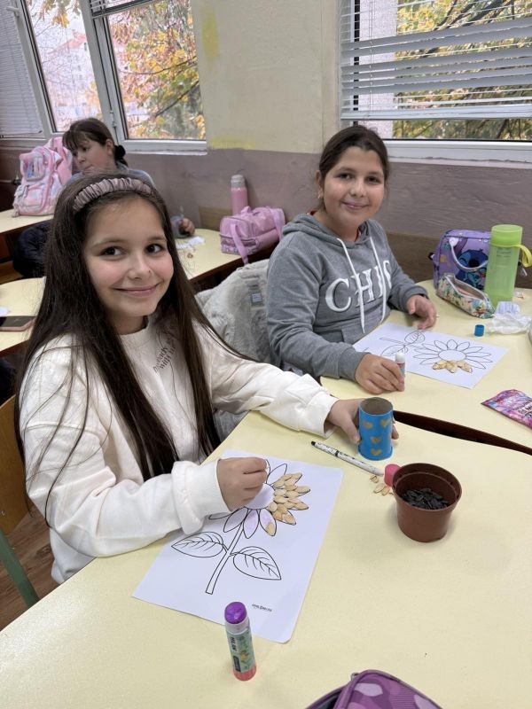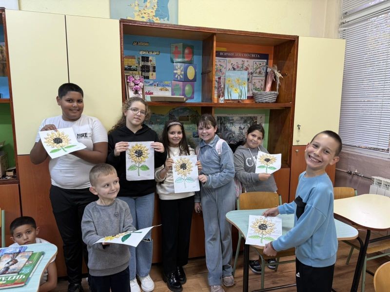 Учениците от 3. и 4. клас под ръководството на своя учител Борислава Узунова превърнаха деня в празник на творчеството. Те изработиха апликации на слънчогледи, като използваха истински слънчогледови и тиквени семена. Докато творяха, децата се учеха на търпение, естетика и любов към природата. Резултатът — красиви и пъстри слънчогледи, които грейват с детската усмивка.