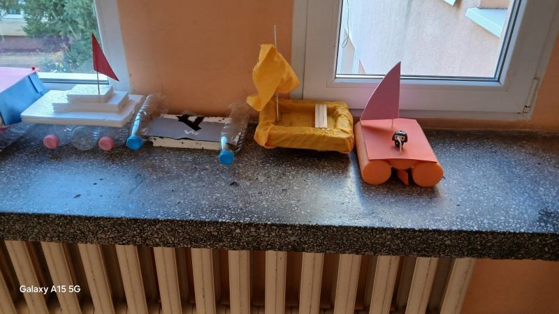 Днес- 14.11., учениците от 6."а", "в" и "г" класове проведоха STEM урок на тема "Плаване на телата". В рамките на часа учениците, разделени на отбори от четирима участници, трябваше да конструират и изработят плавателен съд с материали по свой избор, като спазят условието съдът им да е възможно най-икономичен и компактен по размери, но достатъчно здрав и стабилен, за да носи 100g товар.