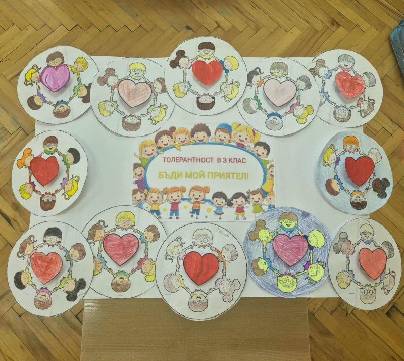 За да отбележат 16 ноември – Деня на толерантността, учениците от 3. клас в група за ЦОУД, с ръководител г-жа Здравка Монева, изработиха пъстро и впечатляващо табло под надслов „БЪДИ МОЙ ПРИЯТЕЛ!“