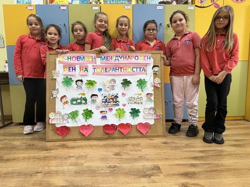 По повод Международния ден на толерантността, който отбелязваме всяка година на 16 ноември, учениците от втори клас проведоха различни инициативи: изработиха табла, посветени на този ден, решаваха кръстословици, проведоха и специален урок по доброта и съпричастност. За да покажат, че толерантността означава грижа, уважение и единство, децата засадиха млади дръвчета в училищния двор.