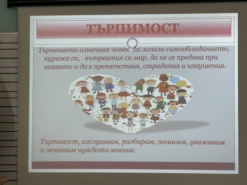 Благодарим от сърце на г-жа Нина Кавърджикова, ресурсен учител към РЦППО, която представи презентация на тема "Качества за толерантност".