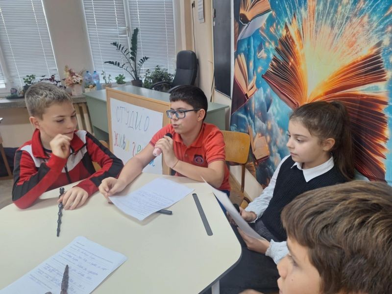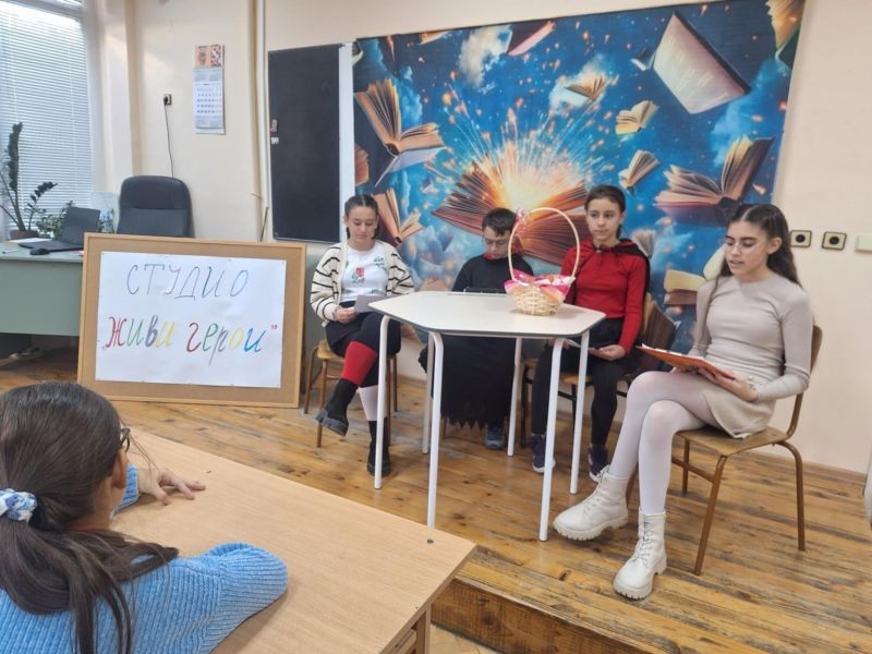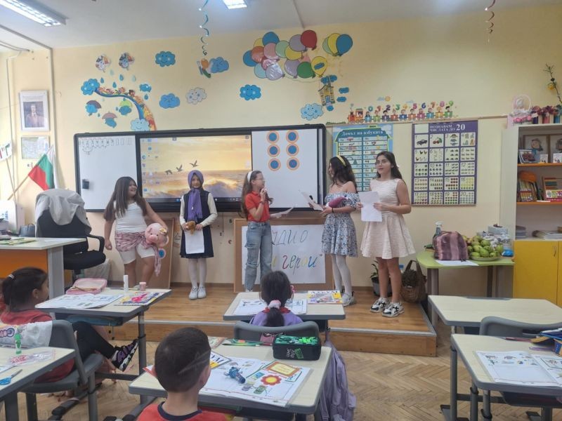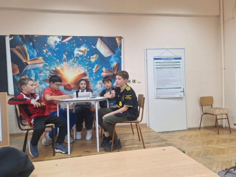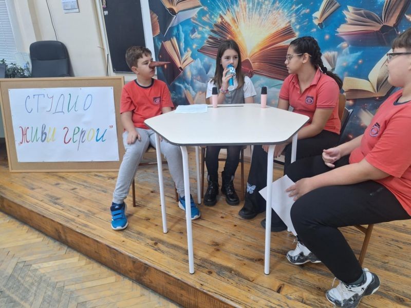 В Деня на четенето учениците от 5. клас превърнаха класната стая в истинско телевизионно студио с импровизирано токшоу на тема „Интервю с литературен герой“. С много настроение, въображение и артистичен дух децата влязоха в ролите на свои любими персонажи от българската и световната литература.