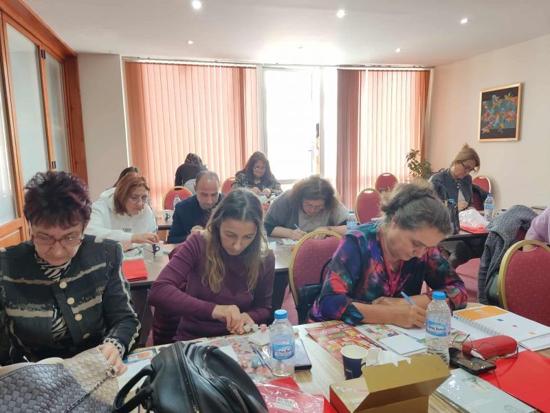 Работата ни беше изключително интензивна, теоретичните знания бяха подкрепени с примери, имаше много групова работа с практическа насоченост, дискусии и обмяна на опит. За да се чувстват обучаемите комфортно и да се създаде позитивна атмосфера в целия курс на обучение, имаше игри, арт-терапия за отпускане и споделяне на емоции и съпреживяване и създаване на приятни спомени. Факт е, че всички обучаеми споделиха, че са доволни от проведеното обучение, не са натоварени, чули са и са видели интересни и за някои от колегите – нови неща, положително са заредени за творческата си работа в училище.