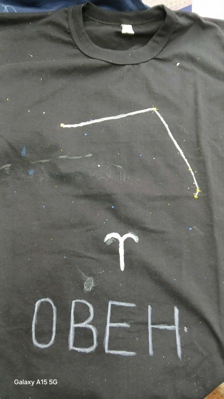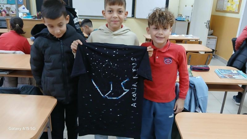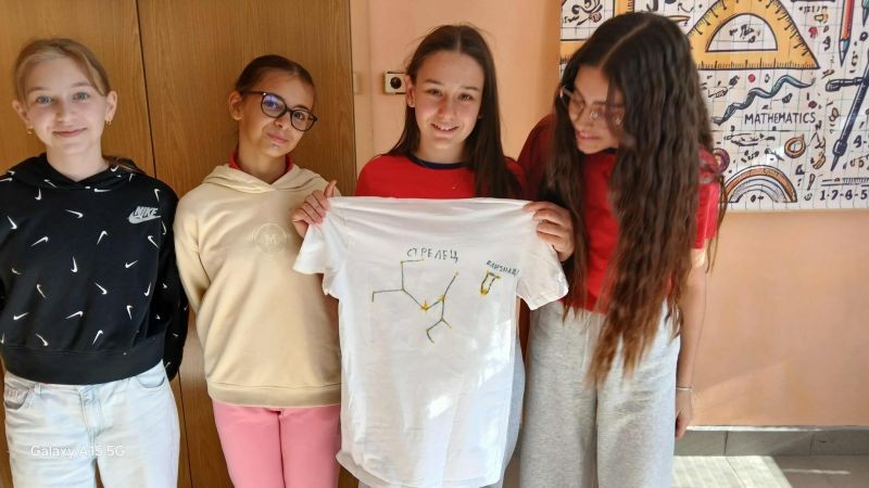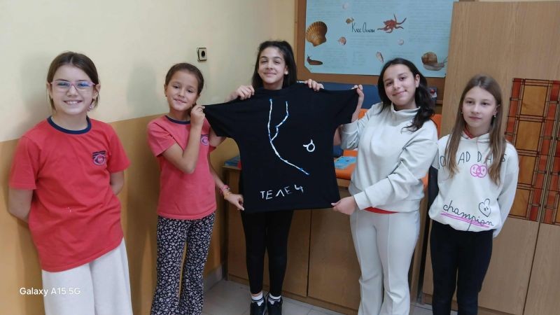 След приключване на задачите чрез томбола бяха изтеглени три зодиакални съзвездия, които децата пресъздадоха с бои и маркери върху тъмни тениски.