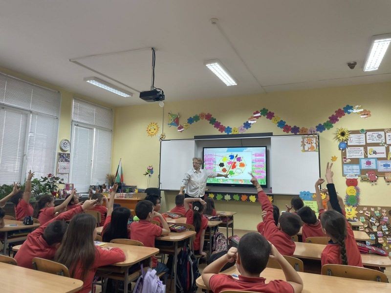 Днес – 27.11.2025г., с учениците от 2. „в“ клас г-жа Мери Божкова проведе урок по английски език на тема „Alphabet, numbers and colours“, реализиран чрез метода „учене по станции в пет стъпки“.