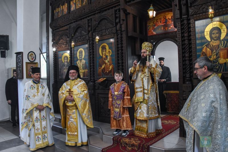 Преди св. Литургия владиката пострига за четец малкия Борис, който помага на о. Николай в храма на всяко богослужение.