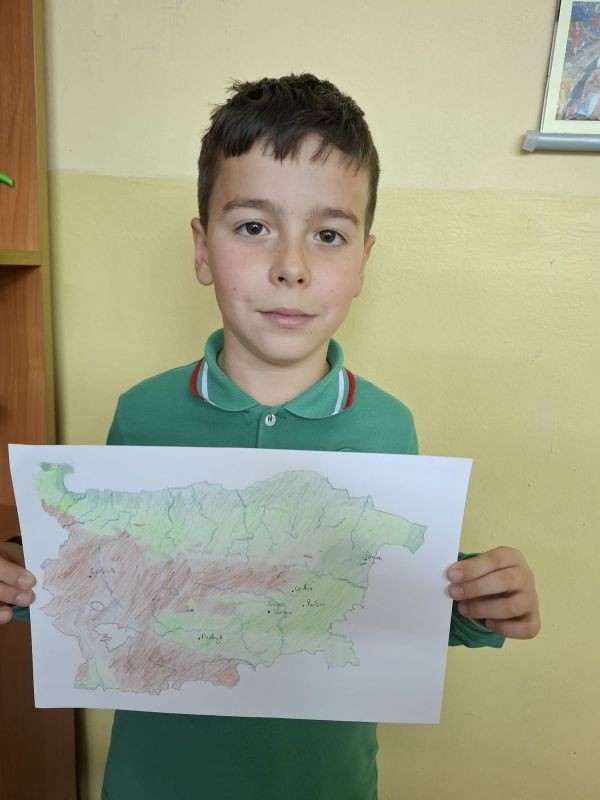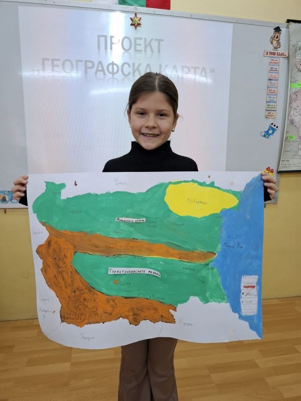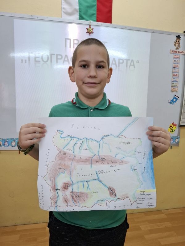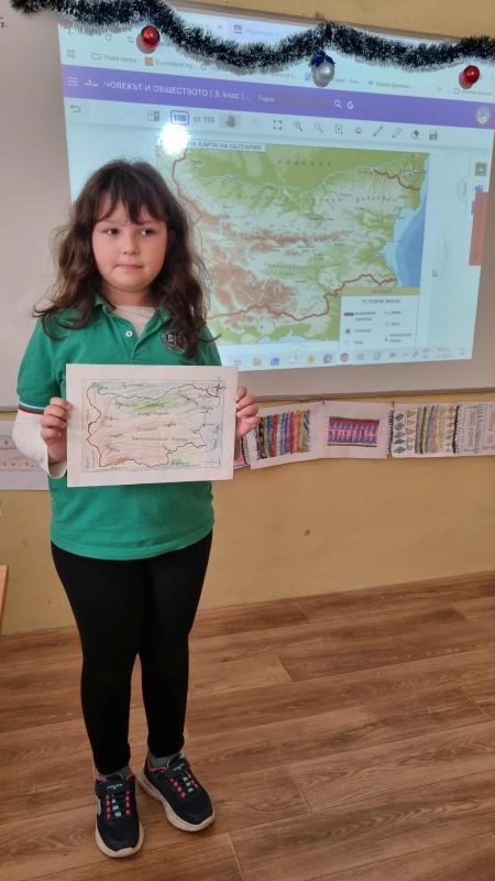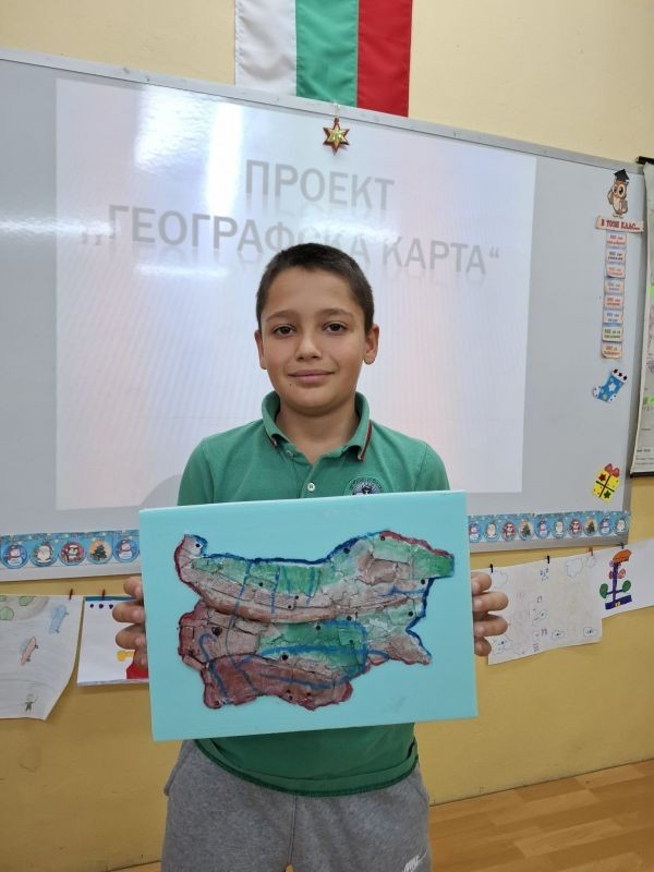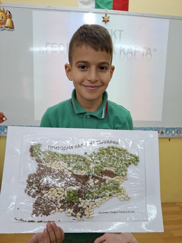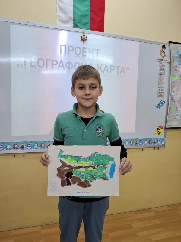 Учениците от 3. клас, заедно със своите родители, се впуснаха в истинско творческо пътешествие, за да създадат своя месечен проект – „Географска карта на България“. В техните домове в продължение на седмици кипеше работа: цветни моливи рисуваха планини, реки и градове, ножички и лепила оформяха релефи, а малките изследователи с любопитство откриваха нови кътчета от родината ни.