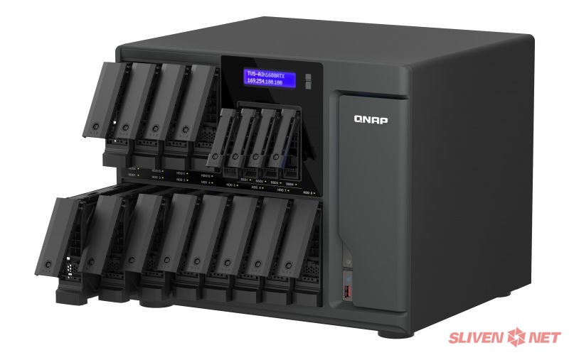 QNAP® Systems, Inc., водещ иноватор в областта на изчислителните, мрежовите и сторидж решения, днес пусна на пазара TVS-AIh1688ATX, корпоративен AI NAS, който интегрира най-новите процесори Intel® Core™ Ultra и невронно-процесорно устройство (NPU), осигурявайки до 36 TOPS (трилиона операции в секунда) обща AI производителност. Проектиран за AI-базиран анализ на изображения/видео, виртуализация, мултимедийна обработка и архивиране в голям мащаб, TVS-AIh1688ATX предлага 12 SATA HDD слота и 4 U.2 NVMe/SATA SSD слота, с поддръжка на High Availability (HA) архитектура, Thunderbolt™ 5 и 100GbE мрежово разширение, което го прави мощна edge AI сторидж платформа за предприятия, готови за бъдещето.