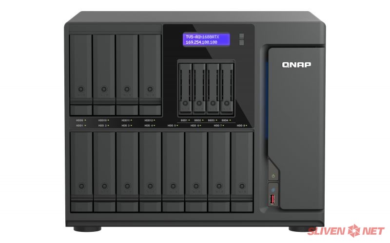 QNAP® Systems, Inc., водещ иноватор в областта на изчислителните, мрежовите и сторидж решения, днес пусна на пазара TVS-AIh1688ATX, корпоративен AI NAS, който интегрира най-новите процесори Intel® Core™ Ultra и невронно-процесорно устройство (NPU), осигурявайки до 36 TOPS (трилиона операции в секунда) обща AI производителност. Проектиран за AI-базиран анализ на изображения/видео, виртуализация, мултимедийна обработка и архивиране в голям мащаб, TVS-AIh1688ATX предлага 12 SATA HDD слота и 4 U.2 NVMe/SATA SSD слота, с поддръжка на High Availability (HA) архитектура, Thunderbolt™ 5 и 100GbE мрежово разширение, което го прави мощна edge AI сторидж платформа за предприятия, готови за бъдещето.